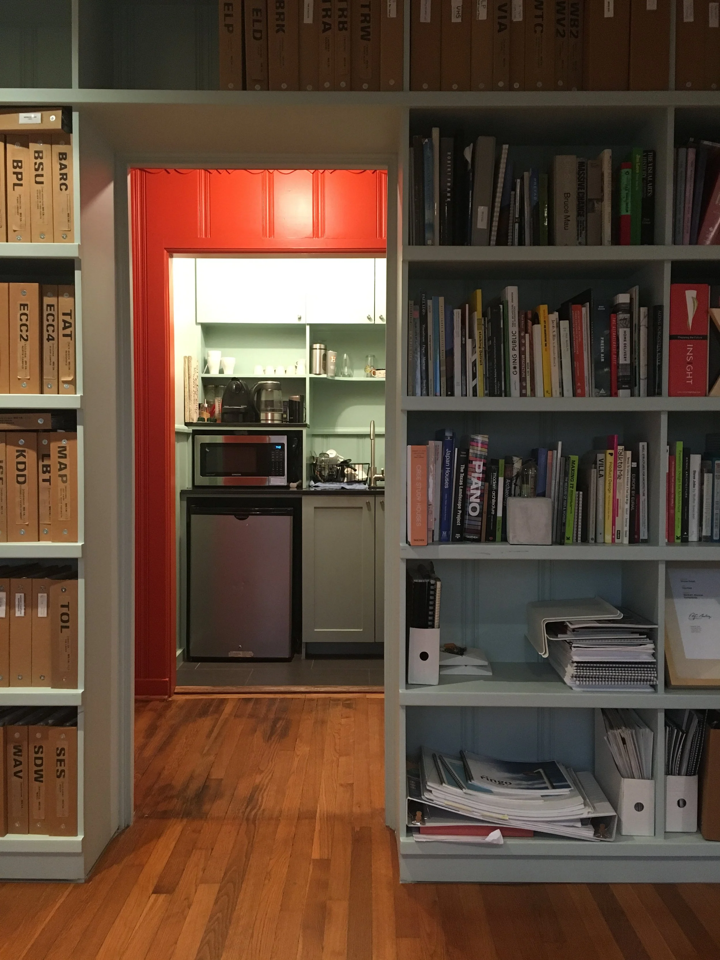 Metalab's own headquarters, 20 North Sampson, is an adaptive reuse structure in Houston's East End District. The two story front of the building is a late Art Deco structure built in 1940, constructed of brick with limestone trim around the windows. The interior, home to our design studio, was a minimal intervention of light demolition and added color to celebrate the original rooms. The mid section of the building is a concrete structure from 1952, which has been partitioned with glass to create a furniture maker's workshop and a common conference for the building. The building's back section is a 1962 Bethlehem steel structure that was redesigned with minimal drywall partitions that are carefully revealed around the existing steel columns and original steel windows.