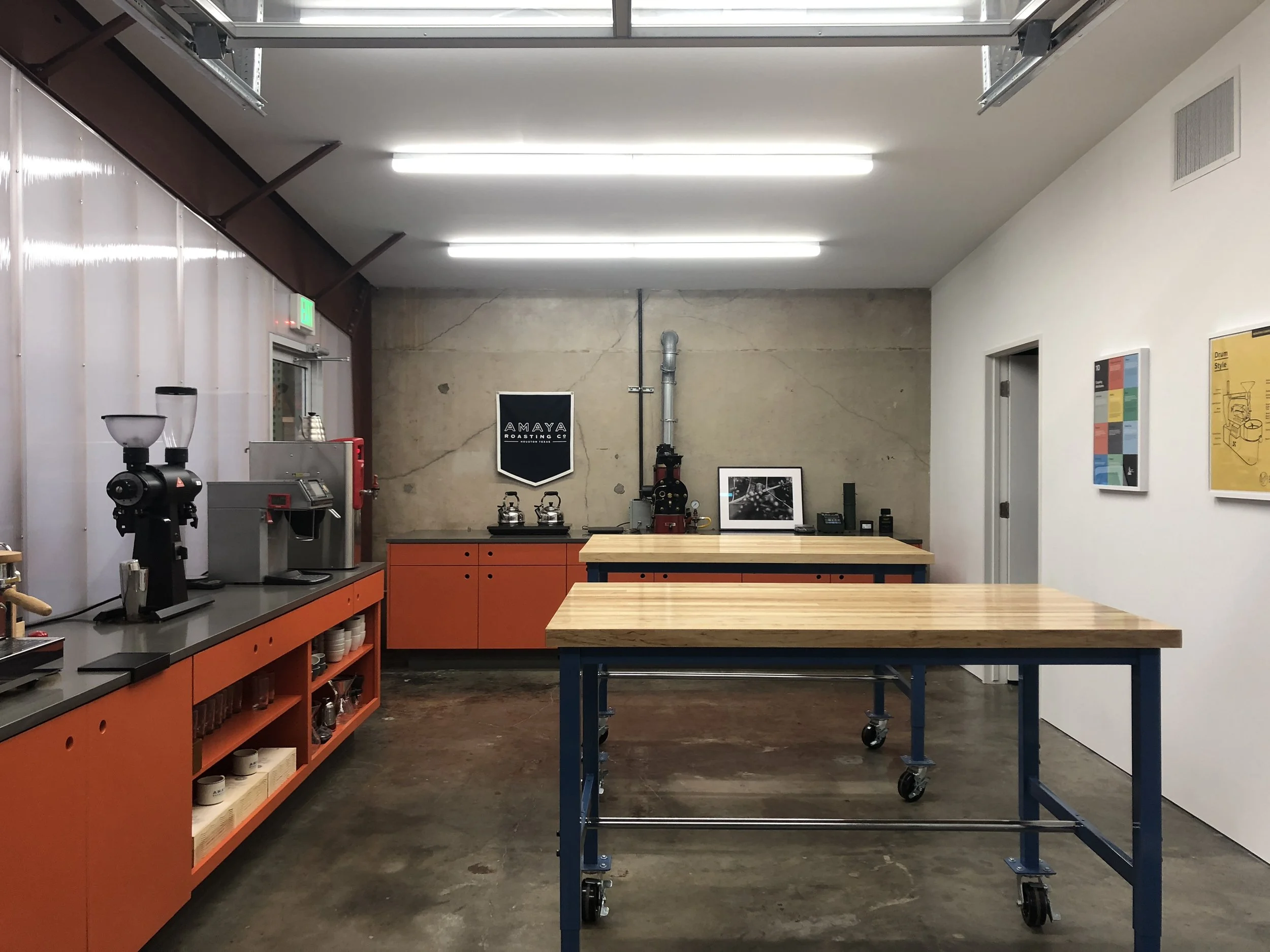 Set in an old warehouse, the Amaya Roasting Company's headquarters is an adaptive reuse project in which the existing steel structure helped to inform how to divide and organize the spaces. Rather than fight the existing structural characteristics, we chose to infill within the bays with a polycarbonate and wood framing system, which met the health and safety regulations for testing and producing coffee in Houston. Throughout the project, strategically placed skylights bring natural light to interior spaces in need of extra visibility. By using conventional materials in unconventional ways, Metalab was able to design a high quality headquarters for a developing business while still meeting their price point.