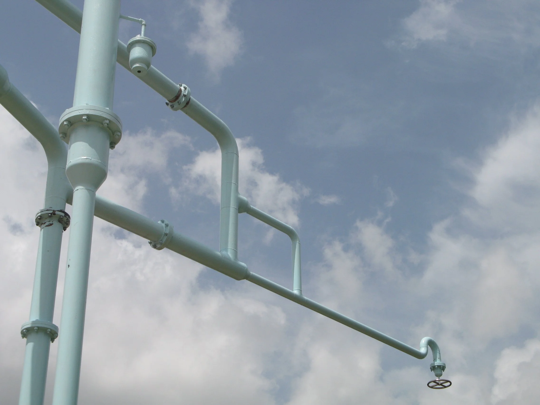 OPEN CHANNEL FLOW, a sculpture by New York based artist Matthew Geller, was commissioned by the Houston Arts Alliance as a permanent piece for the city of Houston Art Collection. Turnkey architecture, custom component fabrication, and construction management helped to realize this commission as a kit-of-parts that was assembled on site efficiently with the quality and finish of a manufactured product. Located next to Buffalo Bayou, the structure emerges from the landscape of a Houston Water Production Station to a height of 60’. Inspired by the strange protrusions of plumbing infrastructure, the colossal pipe work features a public outdoor shower activated by a hand pump. A nearby skate park ensures that a steady flow of skaters and passersby will indulge in a refreshing spritz on Houston’s infamously humid afternoons.